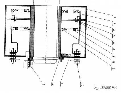 1、一种无刷自控电机软起动器,包括电解液、电解液贮容器,处于电解液中可相对移动的静电极和动电极以及与其电气相连接的接线柱,接线柱与电机电枢连接,使静电极和动电极之间的电阻与电枢串接,其特征在于:所述电解液贮容器为一具有可固定套设在电机转轴上结构的环形容器,静电极(1)和动电极(2)相对地沿转轴径向放置,且相对于轴心,静电极(1)设置在动电极(2)的外侧,电解液贮容器内腔中还设有沿径向设置的导向杆(3),动电极(2)可滑动地安装在其上,动电极(2)与静电极(1)之间设有阻止动电极(2)向静电极(1)移动的弹性阻力装置;所述弹性阻力装置的阻力与动电极(2)和静电极(1)之间距离成反比;电解液贮容器上还设有排气阀(14)和安全阀(13)。